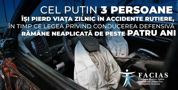 FACIAS: Cel puțin 3 persoane își pierd viața zilnic în accidente rutiere, în timp ce legea privind conducerea defensivă rămâne neaplicată de peste patru ani