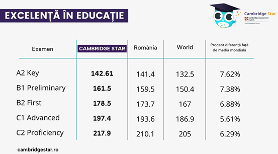 Rezultatele elevilor botoșăneni impresionează nu doar prin număr, ci și prin calitate: acestea sunt cu până la 7,62% peste media mondială Cambridge, conform statisticii realizate de Cambridge University Press & Assessment.