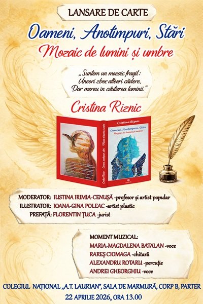 Lansare volum de poezii – debut: ”OAMENI. ANOTIMPURI. STĂRI. Mozaic de lumini și umbre” la Colegiul Național ”A. T. Laurian”