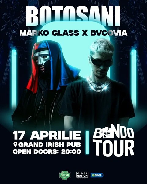 Marko Glass si Bvcovia pornesc impreuna in BANDO TOUR, un turneu national care aduce energia trap-ului romanesc direct in fata fanilor, in mai multe orase din Romania.