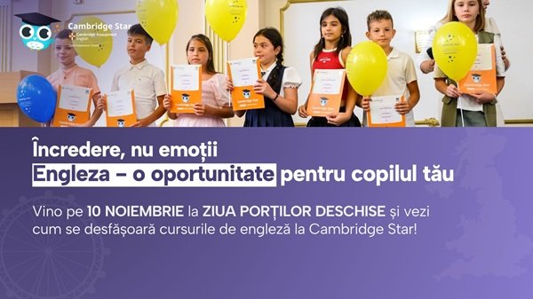 Pe 10 noiembrie, Cambridge Star te invităm împreună cu copilul tău de 5-7 ani la ZIUA PORȚILOR DESCHISE!